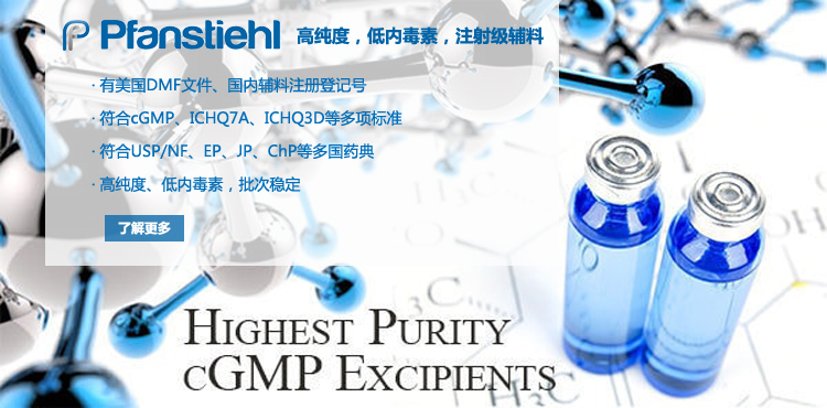“熱烈祝賀Pfanstiehl的注射級甘氨酸Glycine(G-140)喜獲CDE登記號F20250000403, 這是Pfanstiehl產品獲得的第18個CDE登記號!”甘氨酸在醫藥輔料制劑中應用廣泛,, 可作為緩沖劑,增溶劑,穩定劑等,具有諸多優勢。Pfanstiehl秉承一貫高品質理念,為滿足全球生物制藥行業對于高品質甘氨酸的需求,隆重推出的注射級甘氨酸Glycine (G-140), 具有超高純度,超低內毒素,超低金屬殘留的特點,單獨檢測29種金屬離子,并且新增DNA,RNA,DNA酶,RNA酶和脂肪酶,亞硝酸鹽等多項質量指標的檢測,符合多國藥典規定(USP, EP, BP, JPE, ChP),可用于生物治療性藥物和疫苗的生產。產品信息:· 產品名稱:Glycine, High Purity, Low Endotoxin, Low Metals, USP, EP, BP, JPE, ChP (G-140)· 中文名稱:甘氨酸· 分子式:C2H5NO2· 分子量:75.07 g / mol· CAS號:56-40-6· 產品貨號:G-140產品特點: · 超高純度,超低內毒素,超低微生物含量,超低金屬雜質殘留· 質量指標新增DNA,RNA,DNA酶,RNA酶,脂肪酶和亞硝酸鹽檢測· 符合多國藥典:USP, EP, BP, JPE, ChP· 符合ICH Q3D標準· 符合GMP標準· 已獲DMF和CDE登記號 產品應用:· 緩沖劑· 穩定劑· 增溶劑如果您對Pfanstiehl注射級別Glycine G-140感興趣,歡迎聯系Pfanstiehl 中國區代理商北京西美杰科技有限公司獲得如下詳細的產品概況說明文件和測試樣品。Pfanstiehl Inc.最新產品系列如下,歡迎聯系北京西美杰科技有限公司獲取100g裝免費樣品。北京西美杰科技有限公司為Pfanstiehl中國代理,為客戶提供完善的技術支持與售后服務。歡迎撥打西美杰客服電話400-050-4006或者登陸網站www_xmjsci_com.byjr2008.com了解更多信息。 更多>西美杰介紹